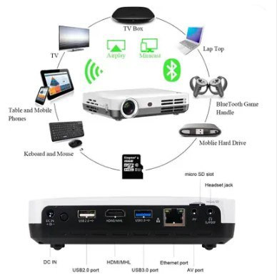 PLAY 3D (20000 lm / Wireless / Remote Controller) Portable Projector (White)